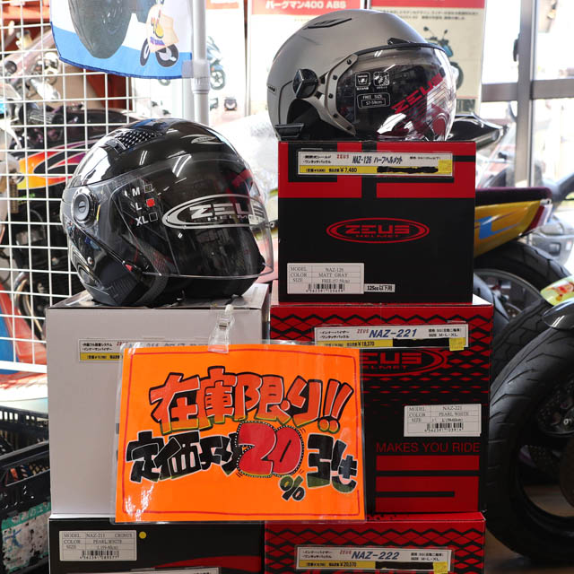 > ヘルメット「在庫限り 20%引き」
